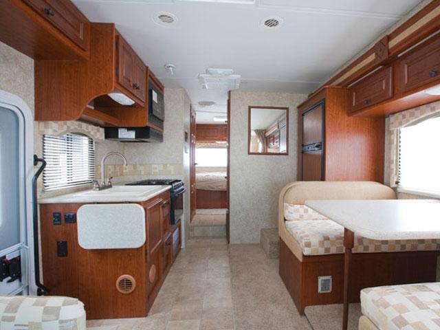 In-dash air conditioning in the drivers' cabin and central roof air in the living area.